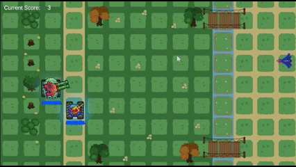 - Lose condition: If a drone collides with a tank, that tank is destroyed and becomes unresponsive to player input. When both of the tanks are unresponsive, the player loses.